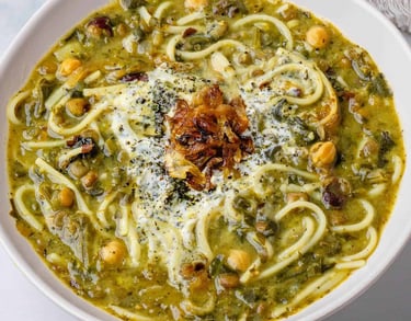 This Friday’s featured dish since we are expecting a very chilly week is Persian Noodle Soup, filled with fresh herbs, leafy greens, legumes, and noodles, served with traditional Persian flatbread.Place your order by Wednesday 28th. $15 per order